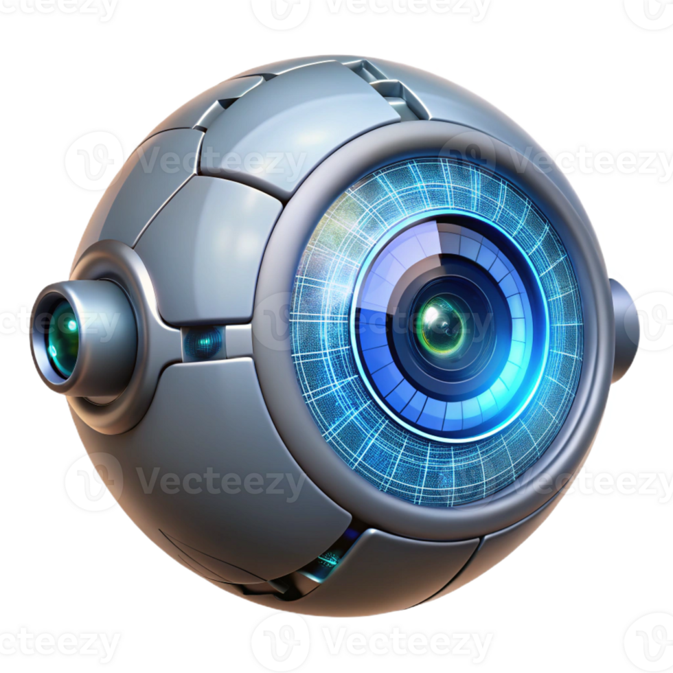 vibrant Créatif une bionique œil avec complexe mécanique détails, reflétant une binaire code, illuminé par une pointu, blanc lumière, dans une cyberpunk style haute résolution PNG Pro