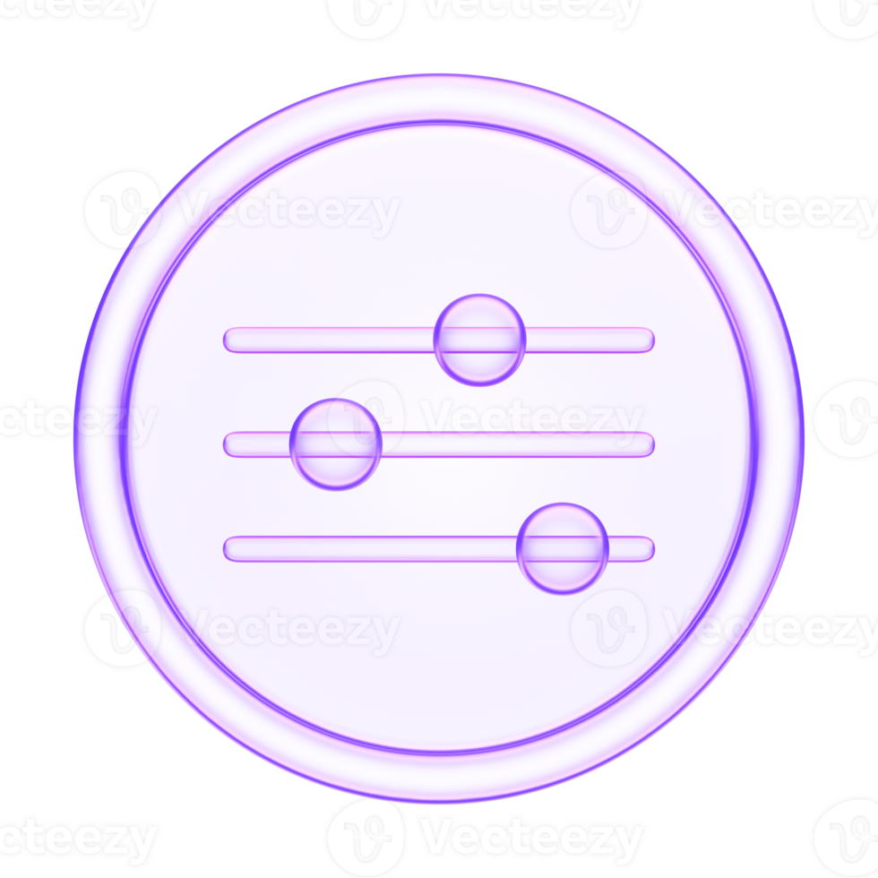 3d morphisme du verre contrôle glissière icône dans violet pente. brillant minimal interface élément représentant ajustement, égaliseur, et personnalisation dans numérique ui systèmes PNG Pro