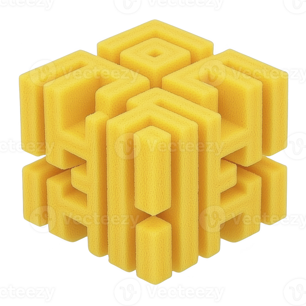 vibrant Jaune géométrique sculpture avec complexe motifs et Trois dimensionnel formes, création visuellement frappant conception. cette unique pièce ajoute moderne toucher à tout espace PNG Pro