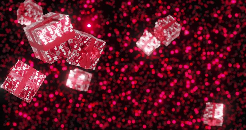 fond de noël. la lumière des particules rouges scintille derrière tous les cadeaux tombant en boucle infinie. Vidéo Gratuite