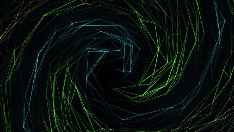 boucle animation avec embrasé bleu et vert connecté lignes et points dans une forme de tourbillon. abstrait plexus Contexte avec numérique Les données réseau connectivité et programmation nœuds. en boucle 4k, 60 ips Vidéo Pro