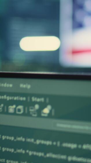 verticale vide haute technologie Bureau avec une gros écran montrant un américain drapeau, représentant la cyber-sécurité opérations. chiffrement, malware détection et Sécurité protocoles à assurer Les données sécurité. caméra b. Vidéo Pro