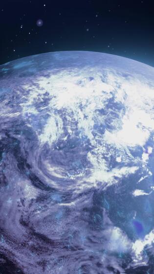 extérieur espace avec une vue de le Terre . mouvement . illuminé dans bleu et Jaune avec une vue de notre planète fabriqué dans animation. Vidéo Pro