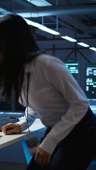 verticale technicien dans Les données centre fournit technique soutien à utilisateurs, dépannage questions, proche en haut. serveur centre ouvriers porter en dehors opérationnel technique interventions demandé par clients, caméra b Vidéo Pro