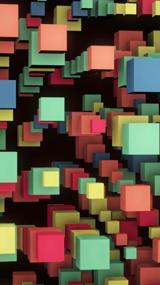 abstrait écoulement bleu, vert, rouge, et Jaune cubes isolé sur noir Contexte. animation. tournant verticale Lignes de coloré 3d cubes, sans couture boucle. Vidéo Pro