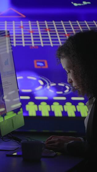 une la personne engagé dans complexe codage Tâches utilisant une état de l'art futuriste interface Vidéo Pro