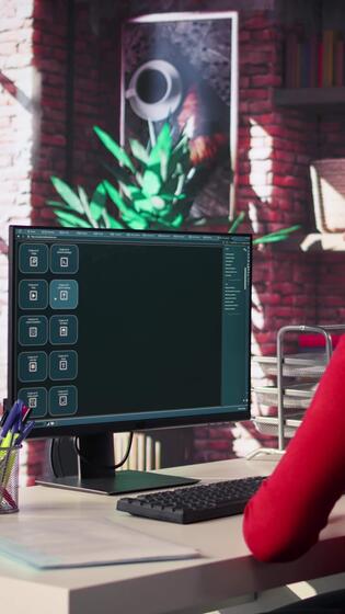 verticale femme dactylographie sur une ordinateur et bavardage avec un ai assistant. futuriste interface points forts artificiel intelligence, machine apprentissage et automatique solutions pour productivité. caméra b. Vidéo Pro