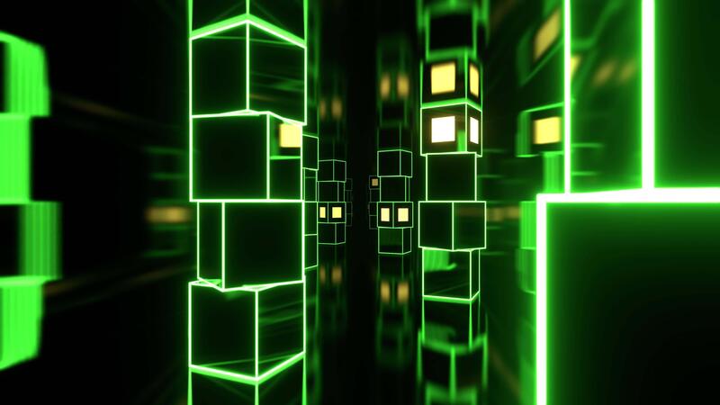 vert et Jaune futuriste stroboscopique couloir avec abstrait cube Colonnes Contexte vj boucle dans 4k Vidéo Gratuite