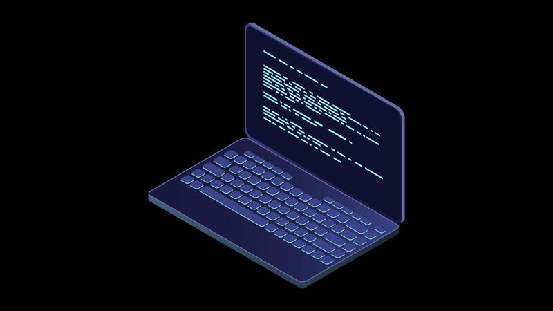 isométrique portable animation. 3d isométrique portable ordinateur. abstrait programmation Langue et programme code sur une portable filtrer. transparent Contexte avec alpha, Vidéo Pro