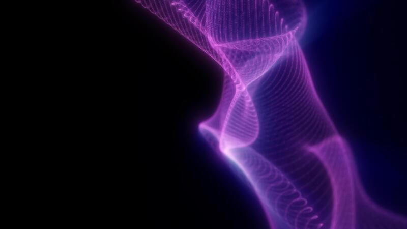 doux violet lumière les structures pliez et courbe à travers une noir arrière-plan, formant minimal encore complexe écoulement numérique vagues Vidéo Gratuite