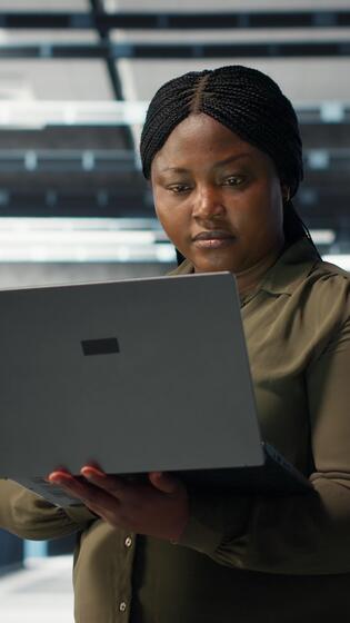 verticale Les données centre lieu de travail programmeur en utilisant portable à coordonner déploiement de Nouveau serveur architecture. serveur pièce ouvrier en utilisant carnet à faire sortir de la cyber-sécurité cadre, protéger données, caméra b Vidéo Pro