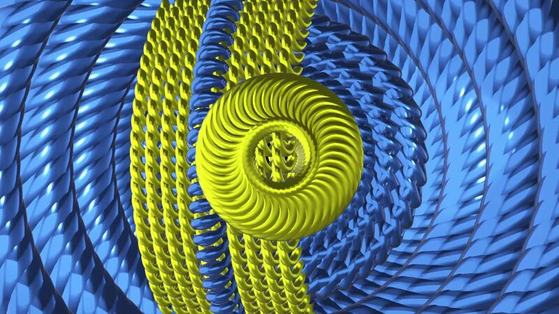 3d animation mettant en valeur tourbillonnant motifs dans bleu et jaune, création une fascinant visuel afficher Vidéo Pro