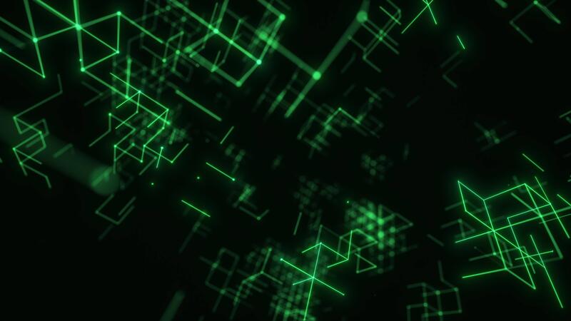 vert luminescent cubes formant une rapide numérique technologie tunnel. en boucle 3d le rendu Vidéo Pro