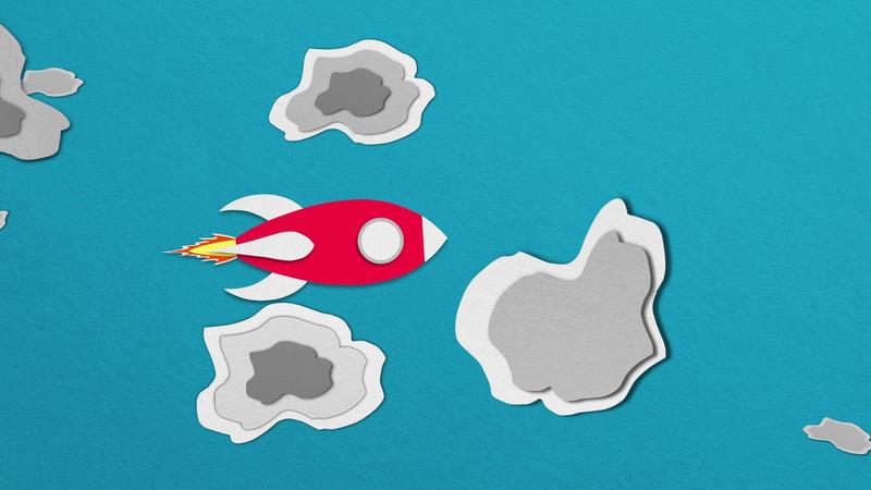 un vaisseau spatial en papier rouge volant dans l'espace défie le milieu du mouvement d'arrêt de la météorite. Vidéo Pro